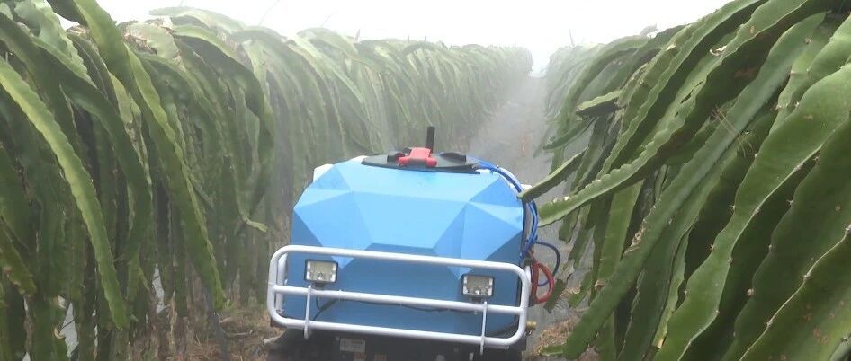 奉贤区火龙果基地引入无人农药车,智慧农机“开”进大棚
