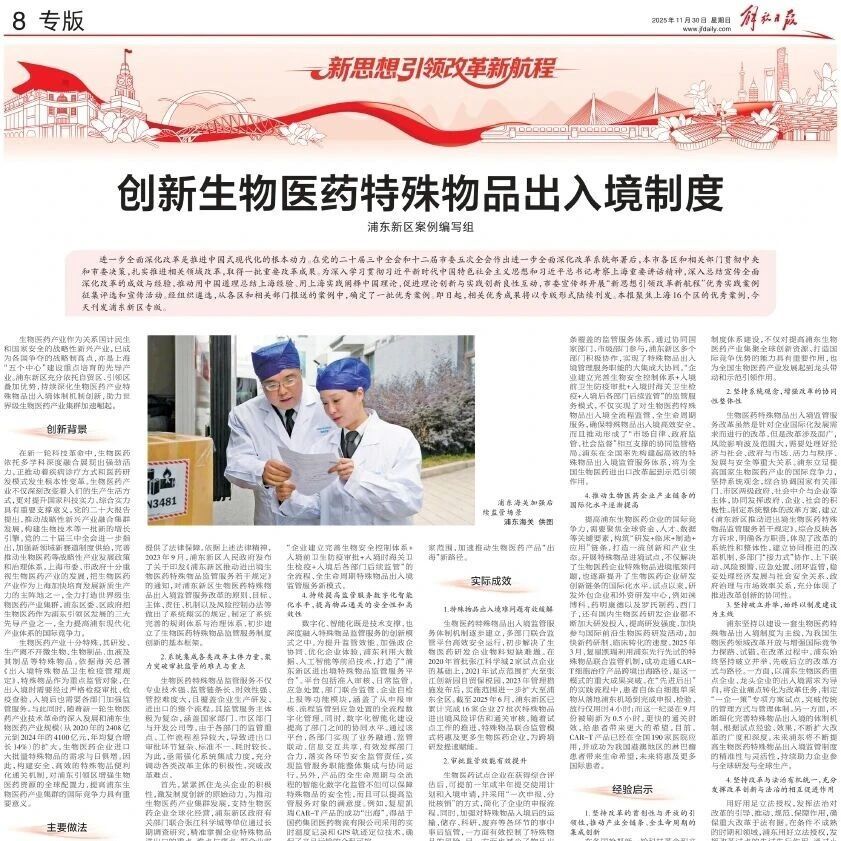 【最佳实践地】解放日报 | 詹宇波:为破解特殊物品出入境难题贡献上海力量