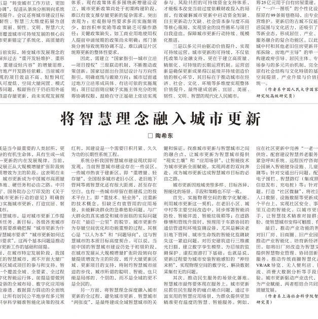 【智库声音】学习时报 | 陶希东:将智慧理念融入城市更新