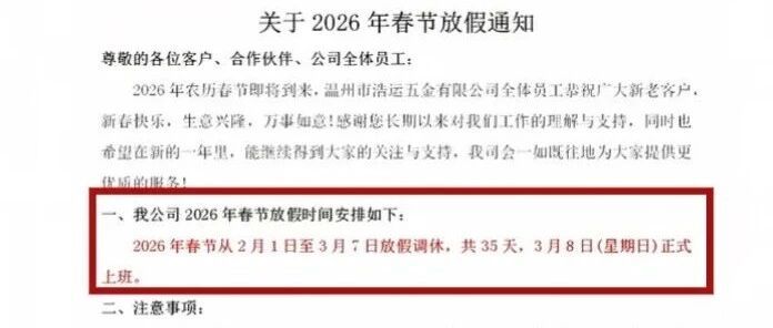 热搜!一企业春节放35天,发5000元返岗奖!有学龄儿童开学2日内返岗奖金照拿!负责人:坚持10余年
