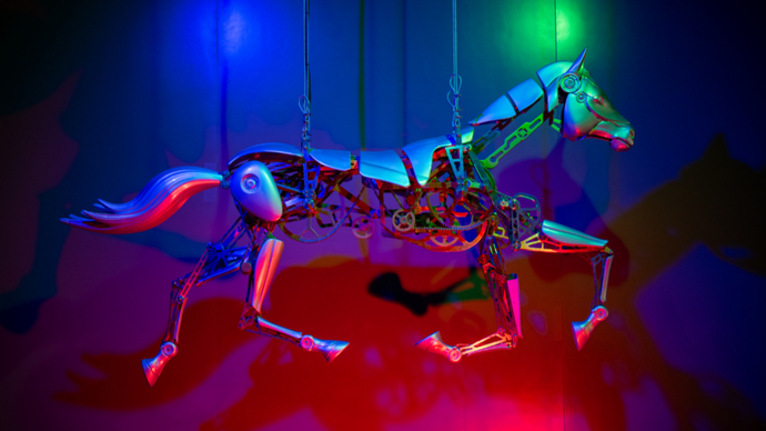 “马曾是人类走向更广阔世界的重要力量。而随着科技进步,马逐渐从耕作、战争和运输中解放出来。”倪闽景说,他希望观众在看展、体验的过程中,重新思考科技将如何继续塑造人类与马的关系。