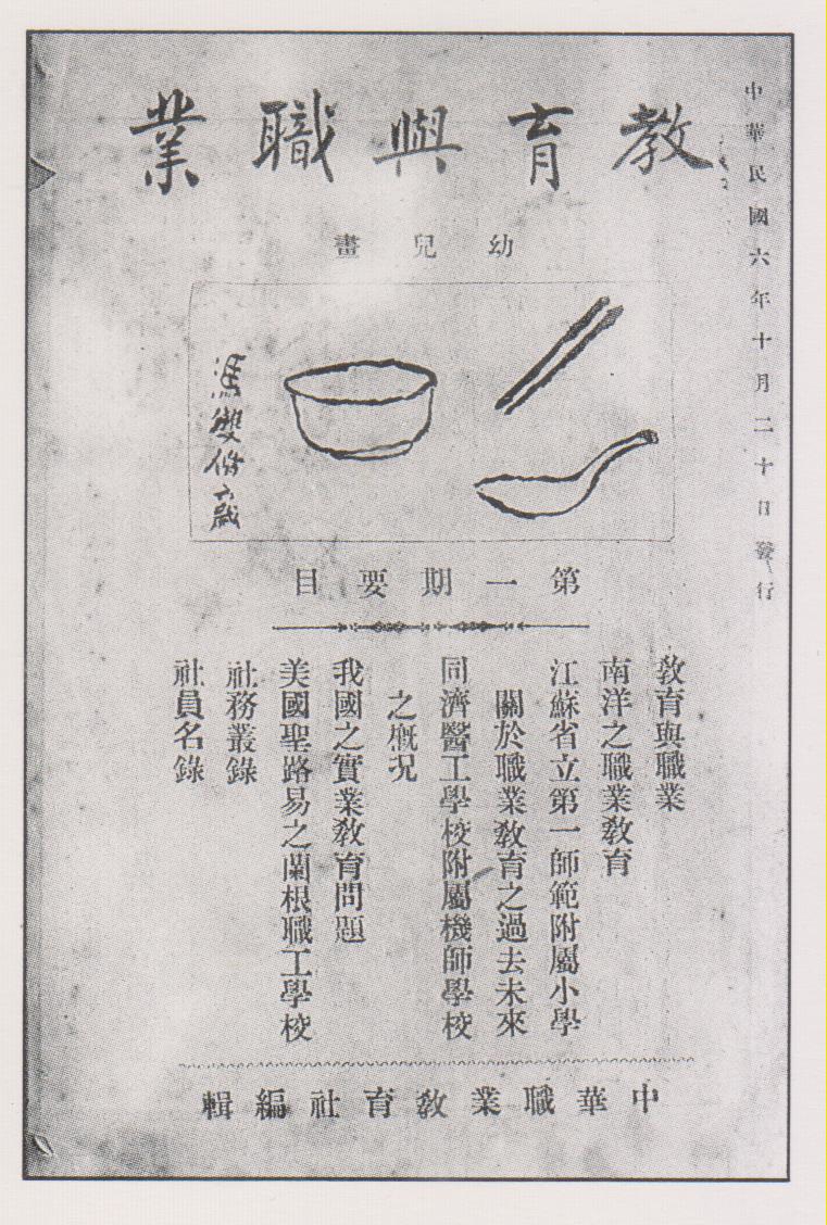 1917年5月6日,黄炎培终于有了行动——在上海创立中华职业教育社,并在《教育杂志》九卷七期上发布成立宣言和章程。宣言称,中国教育之最大危机在于毕业者失业、就业者所学亦不能适于用。蔡元培、马相伯、张元济、严修等48人在宣言上签名。章程则提示,中华职教社之目的在于(甲)推广职业教育,(乙)改良职业教育,(丙)改良普通教育,俾为适于生活之准备。其宗旨有三:一为个人谋生之准备;二为个人服务社会之准备;三为世界国家增进生产力之准备。后来黄炎培又把这个宗旨概括为两句话:“使无业者有业,使有业者乐业。”这也是中国近代教育史上第一个研究、提倡、试验、推行职业教育的全国性组织,黄炎培被推举为办事部主任,主持社务。当年10月,黄炎培创办《教育与职业》月刊。嗣后,黄炎培一系列极有见地的关于职业教育的文章,发表在这本杂志上。中华职业教育社成立一年时,为使职业教育有个试验点,黄炎培创办了一所职业学校。课程设有机械、家具、纽扣、珐琅四科。中华职业学校以教育质量高、收费低蜚声上海,著名数学家华罗庚当年即因家庭不富裕而考入该职校。上海留法俭学会组织的“留法勤工俭学预备科”,也附设于中华职业学校内。中华职业教育社还附设有中华职业指导所,该所与上海工商界多有联系,所以能及时了解用人信息,这也为职校毕业生中无力自谋职业和失业青年,提供了不少就业机会。当年曾就读于中华职业学校的蔡轶伦,晚年时回忆道,他当年来自农村,家境贫寒,因此选择考中华职校商科,毕业后,即由中华职业指导所介绍到当时的上海三星棉铁厂门市部工作。